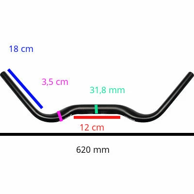Nous proposons aussi un cintre noir pour vélo trekking 25,4 mm de diamètre et 590 mm de large.