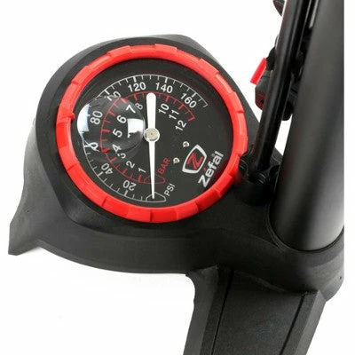 Son long cordon d’une longueur de 1100 mm permet de se raccorder facilement à la valve. La pompe intègre au niveau du pied un manomètre de 75 mm de diamètre. Les informations fournies par ce manomètre sont faciles à lire grâce à une loupe incorporée. Cette pompe à pied est particulièrement légère avec un poids de seulement 1,1 kg.